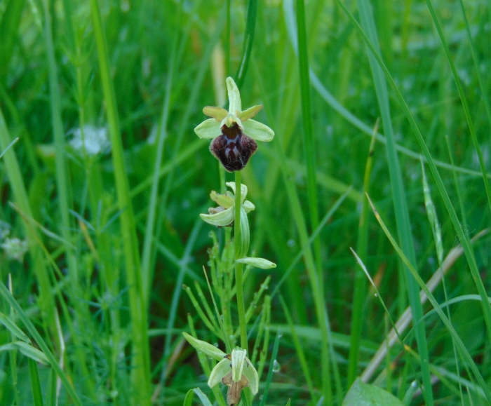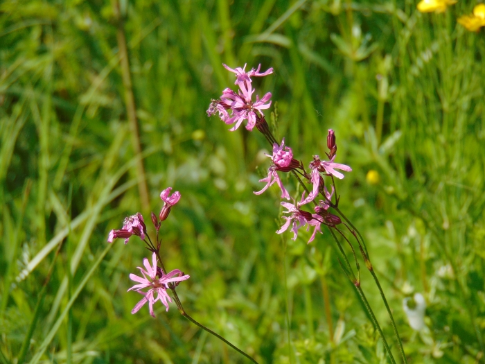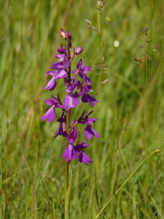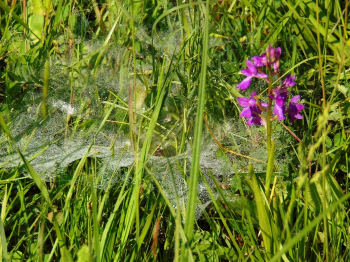 A láprétek jellemző orchideafajai közül néhány máris megmutatta magát. Magasan kiemelkedett a zöld fűből a vitézkosbor egy-két látványos példánya. Rögtön „sztároltuk” is őket: rengeteg fénykép készült róluk. A szerényebb, törékenyebb virágzatú, de élénk színű mocsári kosbor is tetszett mindenkinek. Egyes helyeken szinte „kaszálni lehetett volna”, bár ez nem megfelelő szóhasználat egy védett növény esetében. Az előző fajnál is alacsonyabb és szerényebb orchideával, a poloskaszagú kosborral is találkoztunk már az út elején. Többen állva is érezni véltük a büdös szagát, de a hitetlenebbek (vagy bátrabbak) illetlen testtartást felvéve közvetlen tapasztalással ellenőrizték a névadás helyességét.