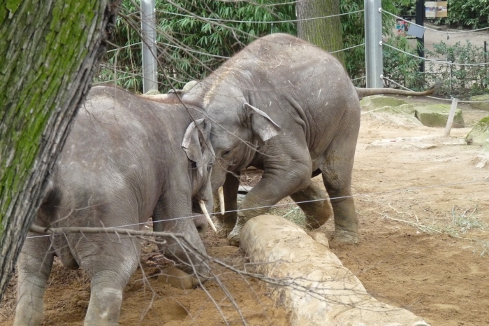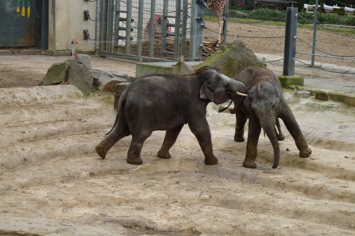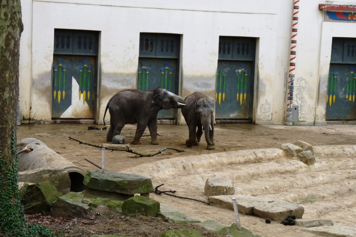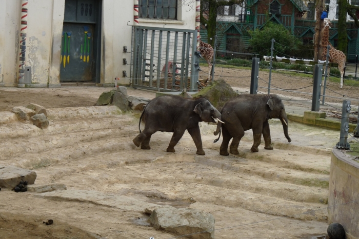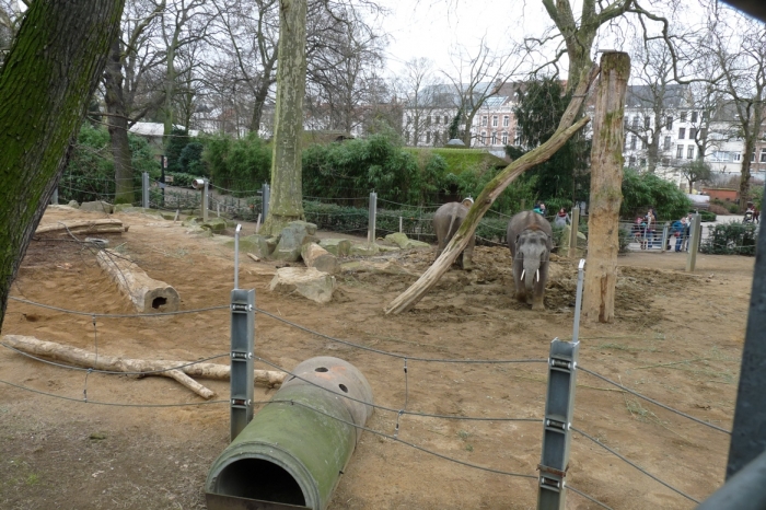A sok érdekes látnivalón kívül váratlanul nagy élmény volt az állatkert két kiselefántjának elevensége, játékos verekedésének látványa. A háromnyelvű (!) információs tábláról megtudtam, hogy a fiatal indiai elefántok egyike Budi, aki 2008-ban Dublinban született, a másik pedig Ming Jung, aki 2007-ben Kölnben látta meg a napvilágot. Mindketten fiatal hímek, akik addig maradnak Antwerpenben, amíg ivarérettek nem lesznek. Ezután döntenek majd arról, hogy hol vesznek részt szaporítási programban. Addig is szemmel láthatóan élvezik egymás társaságát az Egyiptomi Ház kifutójában. Ez a ház az egyik legrégebbi épület az állatkertben, 1856-ban épült. 1988-ban teljesen felújították. Falain a hieroglifák igaz történetet mesélnek el: az afrikai állatok ideszállítását. Most zsiráfok és ázsiai elefántok élnek az Egyiptomi Házban.