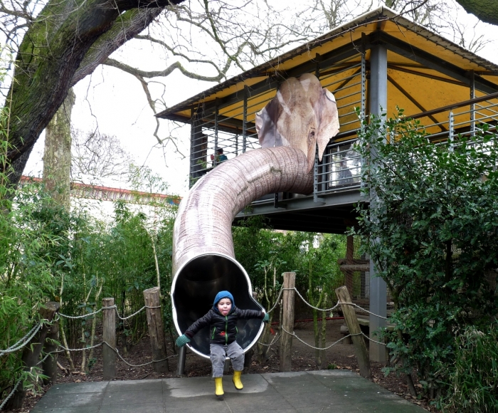 Nemcsak a gyerekek, de a felnőttek is élvezettel nézték a két elefánt szolgáltatta „műsort”. A kilátóból jól lehetett látni őket. Ha a gyerekek elunták a nézelődést, egy elefántormány alakú csúszdán hagyhatták el a kilátót. Milyen jópofa ötlet!