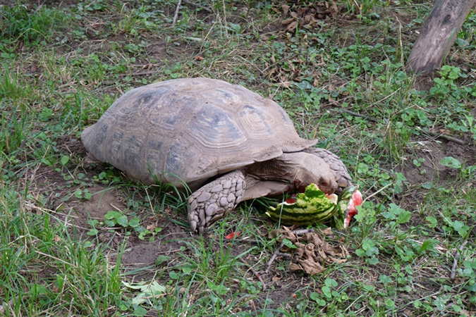 Annyi apró emlék jut még eszembe az állatkertből! Például az a fehér kakadu, aki a látogatókkal játszott. Szívesen fogadott minden tárgyat (kiskanalat, botot, tobozt, stb.), amit aztán elvett és elrejtett a „kincsei” közé, egy lyukba a röpdében. Sőt előfordult, hogy cseretárgyat hozott a saját készletéből! Vagy az a nagy, szárazföldi teknős, aki a maga komótos tempójában befalt ebédre egy teljes görögdinnyét! Igaz, hogy feltörnie nem kellett, mert úgy kapta, de aztán megette „szőröstül-bőröstül”, vagyis a héjával együtt.