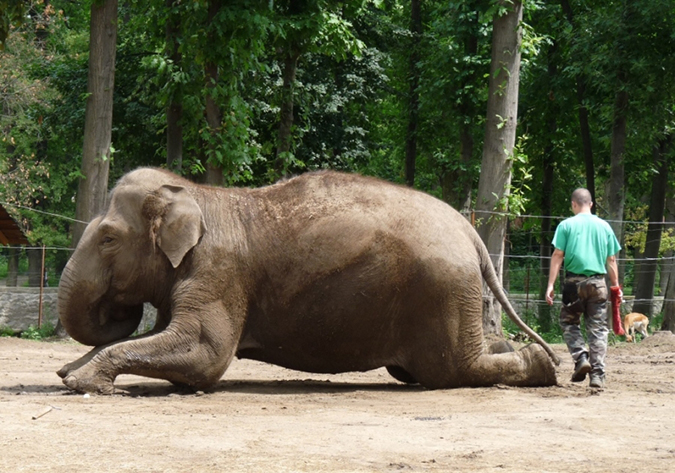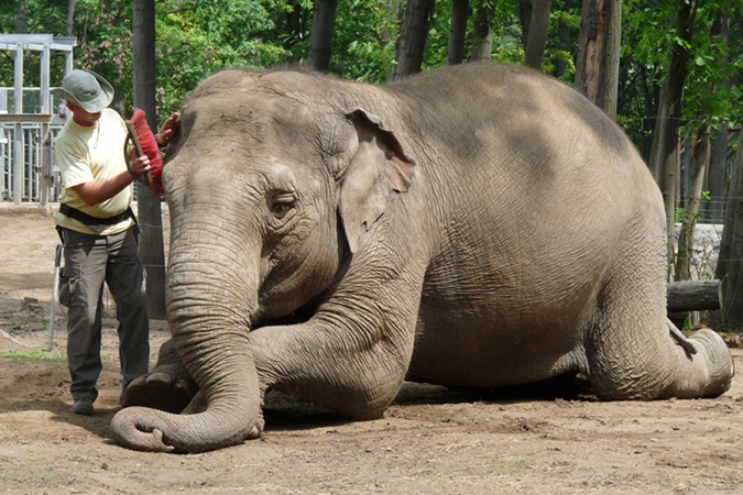 Nagy és erős állat akad még bőven, itt vannak például az elefántok. Mind ázsiai, mind afrikai elefántokat tartanak (ez utóbbiak ritkábbak az állatkertekben). Az afrikaiaknál kiselefántot is lehet látni. Az indiaiaknál érdemes megnézni a napi mosdatást. A gondozók egy jól begyakorolt rítus szerint sétáltatják az állatokat, majd lefektetik őket és végigdörzsölik a testüket, csak úgy száll a por! A parancsok jó végrehajtásáért alma jár jutalmul. Érdekes látni, amint a nehézkes testű állatok lehasalnak, oldalukra dőlnek, élvezik, amint a kemény kefével vakarásszák őket. Mindez azt is szolgálja, hogy megszokják az érintést, és működjenek együtt az orvosi vizsgálatoknál.
